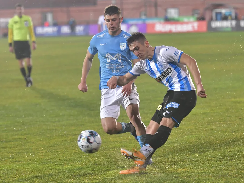 Cristian Ionut Costin si Bogdan Ilie Vatajelu in meciul de fotbal dintre FC Voluntari si Universitatea Craiova, contand pentru Liga 1 Casa Pariurilor, desfasurat pe Stadionul Anghel Iordanescu din Voluntari, sambata 11 decembrie 2021. © FOTO:Razvan Pasarica/SPORT PICTURES