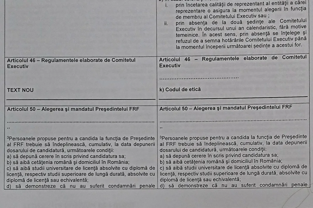 FRF minte când afirmă că schimbările de regulament operate de Burleanu nu-i interzic lui Lupescu să candideze la președinție. Cum arată Articolul 50 al Statutului FRF pentru care se dă acum lupta în Justiție | ACTE