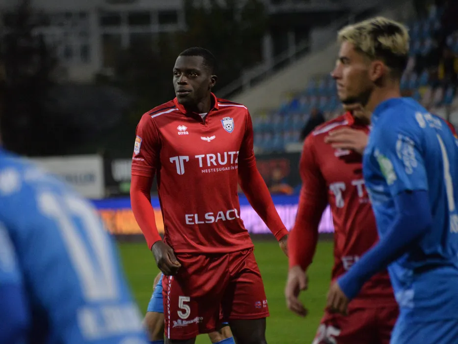 Joyskim Aurelien Dawa Tchakonte in meciul de fotbal dintre FC Botosani si Chindia Targoviste, contand pentru Liga 1 Casa Pariurilor, desfasurat pe Stadionul Municipal din Botosani, luni 18 octombrie 2021. © FOTO:Ionut Tabultoc/SPORT PICTURES