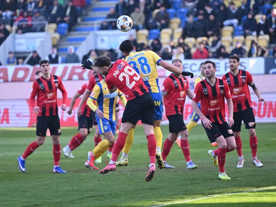 Razvan Alin Trif, Marco Alexandru Dulca si Janos Krisztian Hegedus in meciul de fotbal dintre Petrolul Ploiesti si FK Csikszereda Miercurea Ciuc, contand pentru Superliga Superbet, desfasurat pe Stadionul Ilie Oana din Ploiesti, duminica 1 martie 2026. © FOTO:Razvan Pasarica/SPORT PICTURES