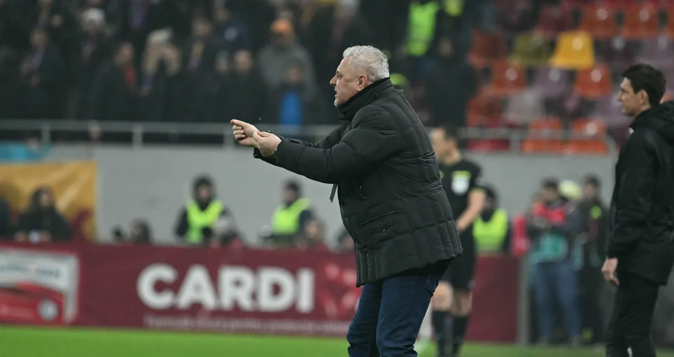 Marius Șumudică, antrenorul Rapidului, dând indicații tactice în timpul derby-ului cu FCSB, 0-0. | Foto: Sport Pictures