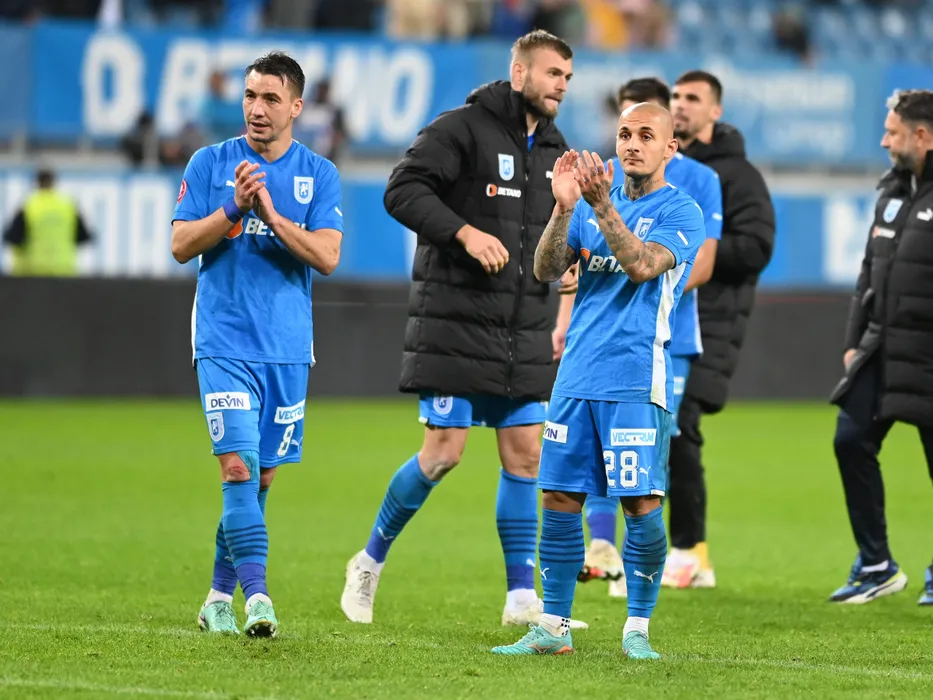 Fotbalistii craioveni Alexandru Mateiu si Ionut Alexandru Mitrita saluta galeria dupa meciul de fotbal dintre Universitatea Craiova si FC U Craiova, contand pentru Superliga Superbet, desfasurat pe Stadionul Ion Oblemenco din Craiova, sambata 4 noiembrie 2023. © FOTO:Razvan Pasarica/SPORT PICTURES
