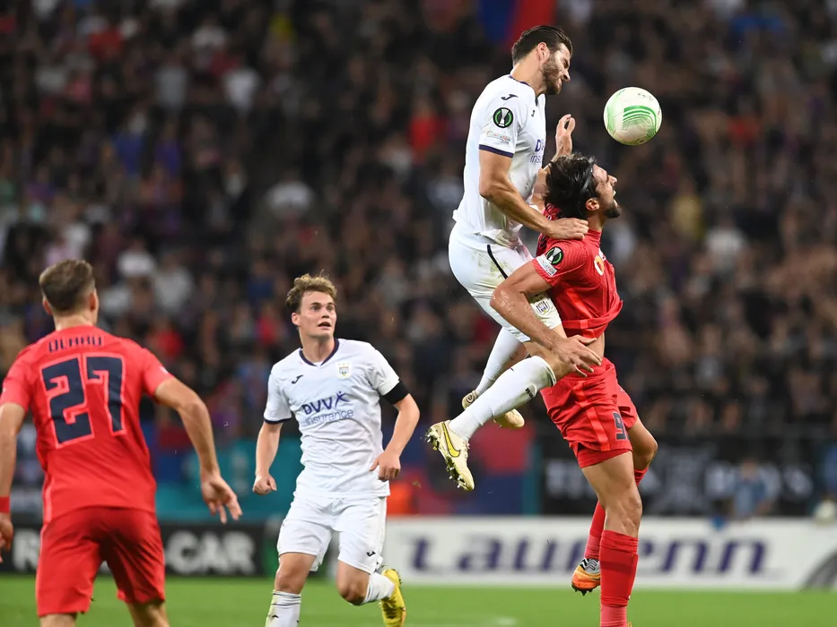 Wesley Hoedt si Andrea Compagno in meciul de fotbal dintre FCSB si RSC Anderlecht Bruxelles, din cadrul grupelor UEFA Europa Conference League, desfasurat pe Arena Nationala din Bucuresti, joi 15 septembrie 2022. © FOTO:Razvan Pasarica/SPORT PICTURES