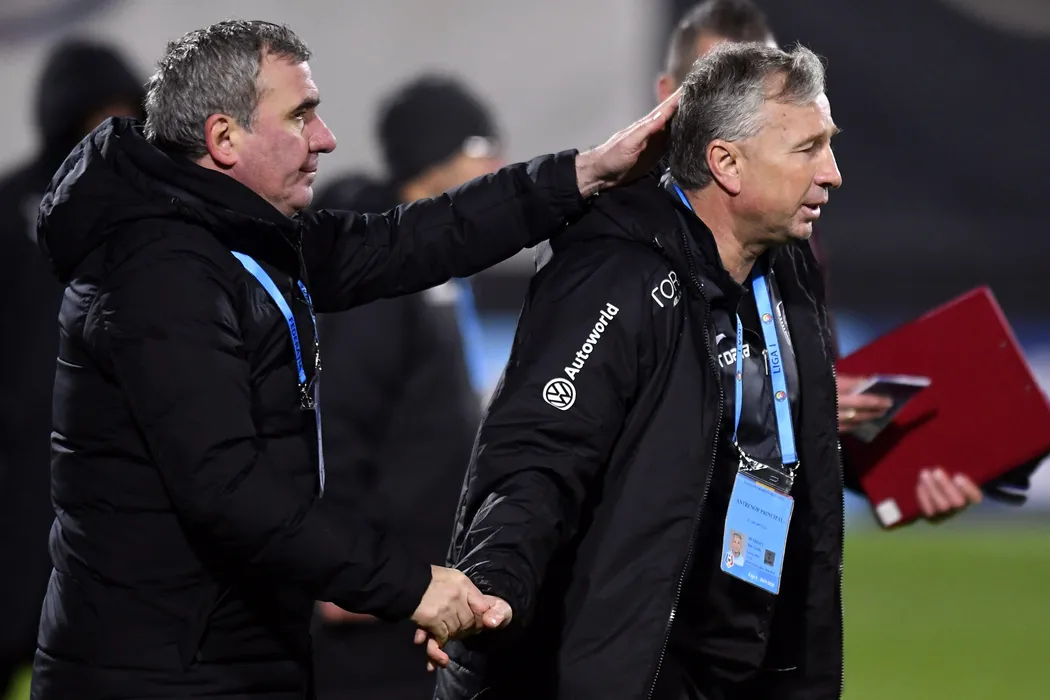 Gica Hagi il felicita pe Dan Petrescu dupa meciul de fotbal dintre CFR Cluj si FC Viitorul, contand pentru Liga 1 Casa Pariurilor, disputat pe Stadionul Dr. Constantin Radulescu din Cluj Napoca, vineri 14 februarie 2019. © FOTO:Razvan Pasarica/SPORT PICTURES