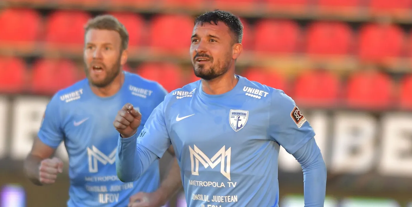 Constantin Valentin Budescu se bucura dupa un gol marcat in meciul de fotbal dintre FC Voluntari si Sepsi OSK Sfantu Gheorghe, contand pentru Liga 1 Casa Pariurilor, desfasurat pe Stadionul Anghel Iordanescu din Voluntari, sambata 19 februarie 2022. © FOTO:Razvan Pasarica/SPORT PICTURES