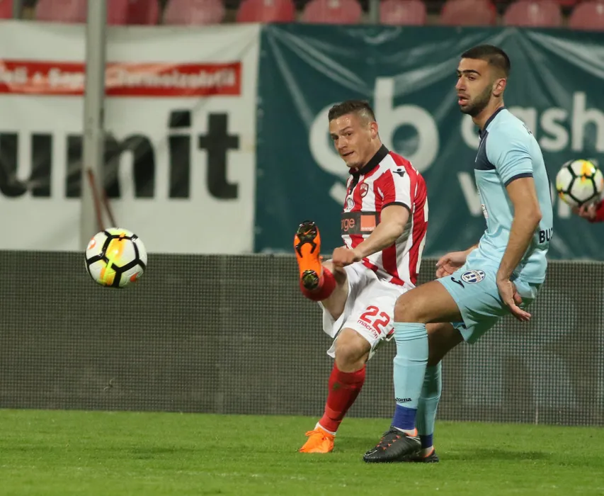 Gabriel Torje (S), de la Dinamo Bucuresti, suteaza in timpul meciului de fotbal contra echipei Juventus Bucuresti din etapa a III-a a play-out-ului Ligii 1, disputat pe stadionul Stefan cel Mare din Capitala, vineri, 30 martie 2018GEORGE FILIP / MEDIAFAX FOTO