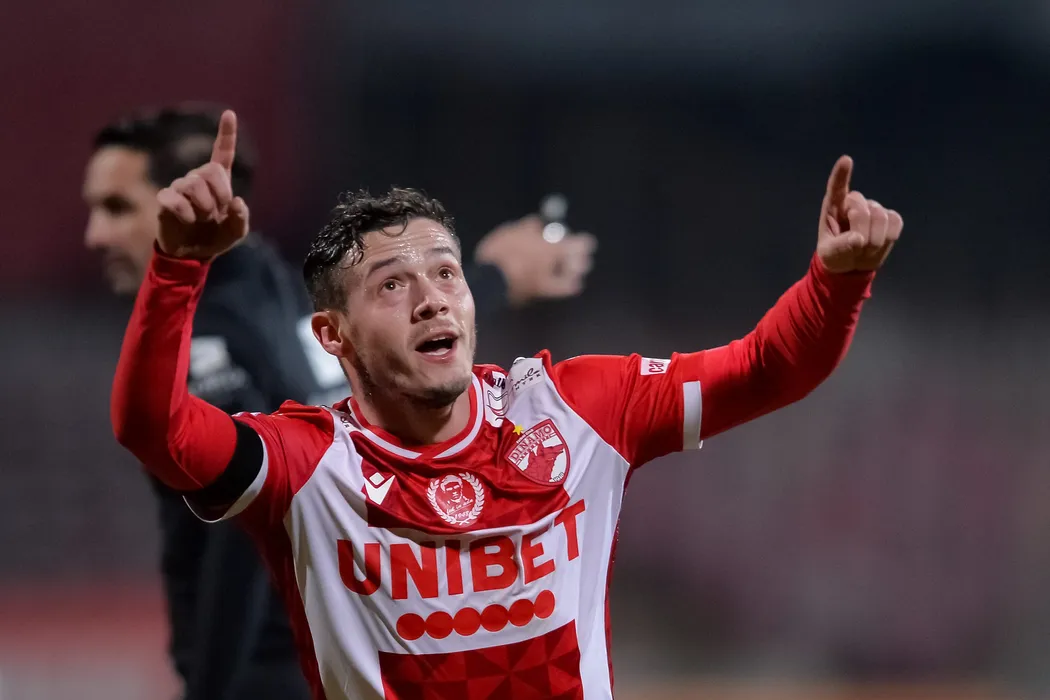 Gabriel Torje reactioneaza dupa ce a inscris in partida dintre echipele Dinamo si Gaz Metan Medias, partida disputata in etapa cu numarul 27 din Liga 1 de fotbal, pe stadionul Dinamo din Bucuresti, vineri, 18 februarie 2022. ALEXANDRU DOBRE / MEDIAFAX FOTO