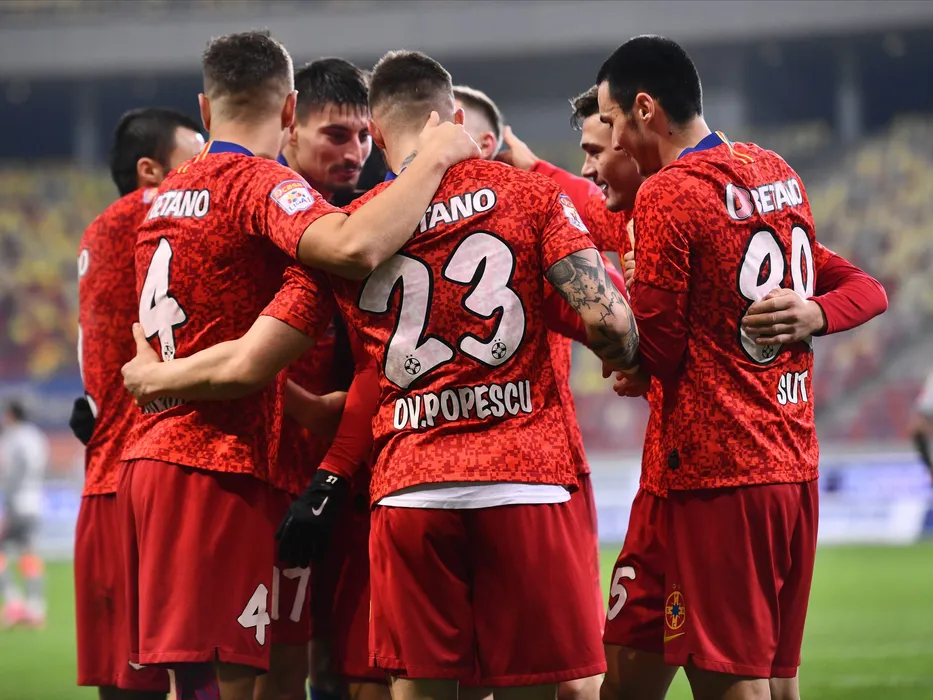 Bucurie stelista cu Iulian Lucian Cristea, Gabriel Bogdan Simion si Adrian Gheorghe Sut in meciul de fotbal dintre FCSB si UTA Arad, contand pentru Liga 1 Casa Pariurilor, desfasurat fara spectatori pe Arena Nationala din Bucuresti, sambata 5 decembrie 2020. © FOTO:Razvan Pasarica/SPORT PICTURES