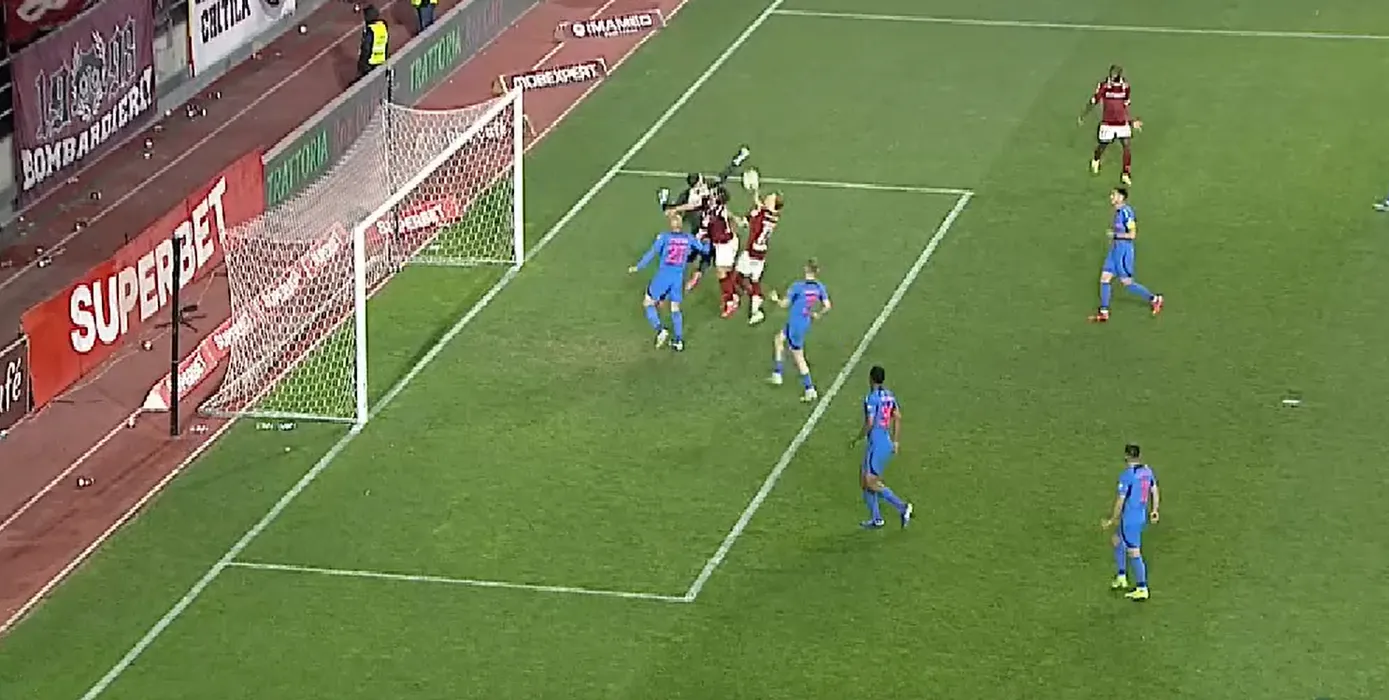 Gafă colosală a lui Ștefan Târnovanu, salvată de Radu Petrescu! Arbitrul nu a dat un penalty clar pentru Rapid, deși portarul FCSB l-a lovit dur pe Christensen