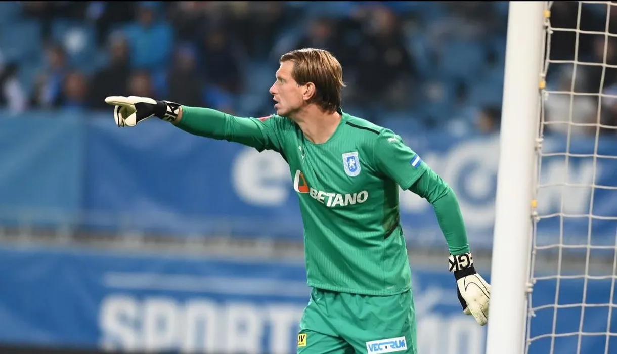 Gafă colosală făcută de Giedrius Arlauskis! Portarul lituanian l-a faultat pe Mihai Popescu în colțul careului, iar Farul și-a dublat avantajul în partida cu Universitatea Craiova