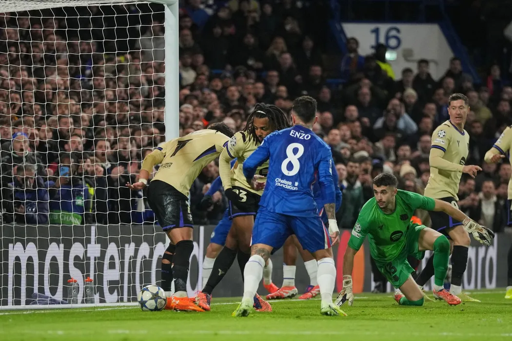 Barcelona's Jules Kounde, second left, scored an own goal during the Champions League opening phase soccer match between Chelsea and Barcelona in London, Tuesday, Nov. 25, 2025.,Image: 1054604503, License: Rights-managed, Restrictions: This content is intended for editorial use only. For other uses, additional clearances may be required., Model Release: no, Pictured: Jules Kounde, Credit line: Kin Cheung / AP / Profimedia