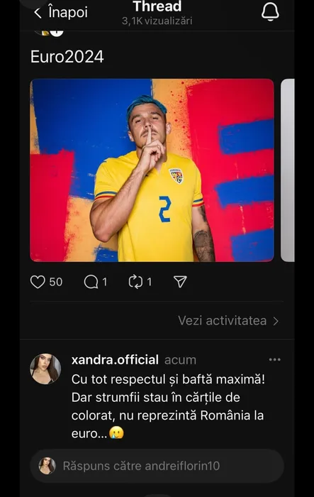 Gafa impardonabilă a cântăreței la adresa lui Andrei Rațiu: „Ştrumfii stau în cărțile de colorat, nu reprezintă România la EURO!”. Ce a promis că va face dacă învingem Olanda, după ce a realizat că l-a jignit pe fotbalist