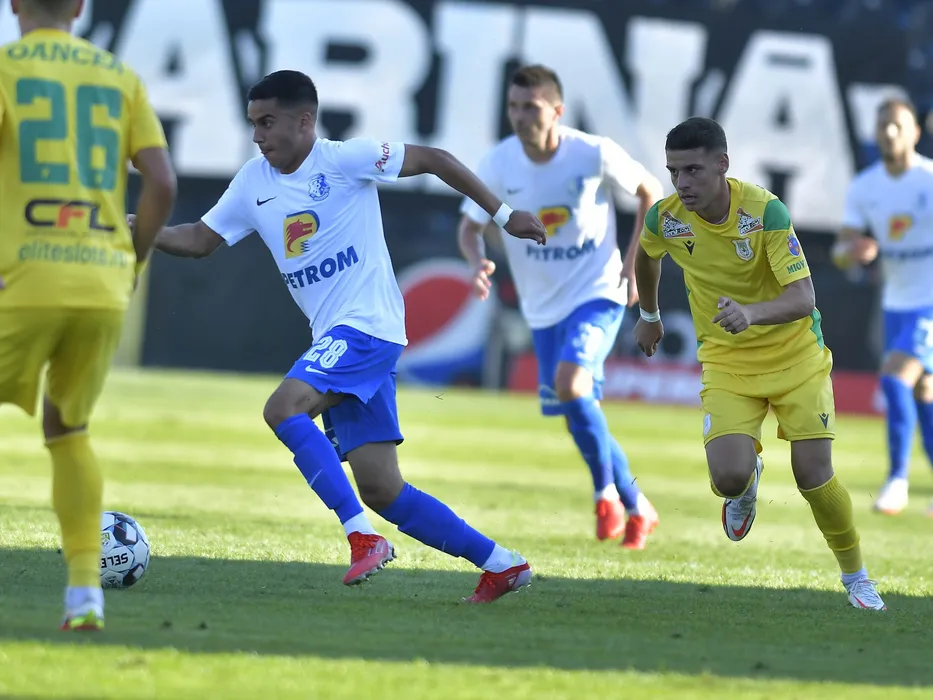Daniel Marian Toma si Enes Sali in meciul de fotbal dintre Farul Constanta si CS Mioveni, contand pentru Liga 1 Casa Pariurilor, desfasurat pe Stadionul central al Academiei Gheorghe Hagi din Ovidiu, duminica 26 septembrie 2021. © FOTO:Razvan Pasarica/SPORT PICTURES