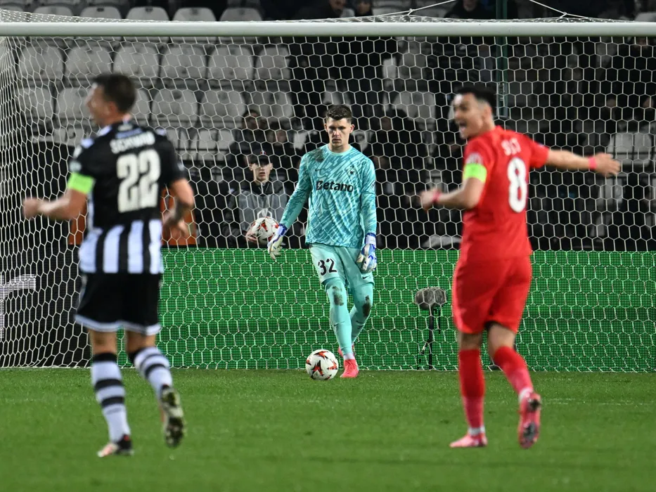 Ștefan Târnovanu in meciul de fotbal dintre PAOK Salonic si FCSB, din cadrul UEFA Europa League, desfasurat pe Stadionul Toumba din Salonic, joi 13 februarie 2025. © FOTO:Razvan Pasarica/SPORT PICTURES