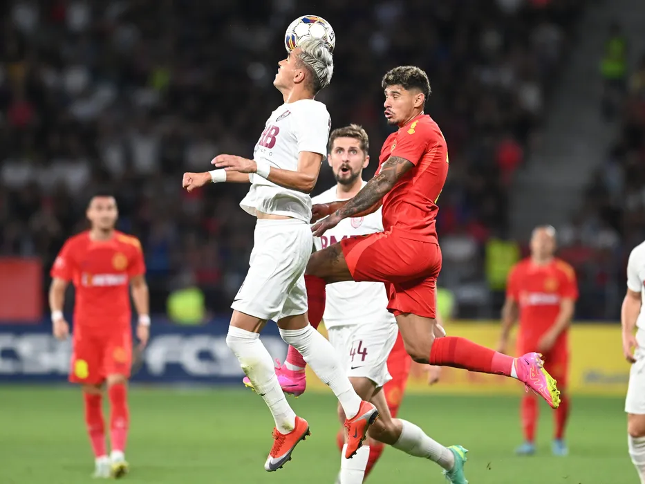 Cristian Marian Manea si Florinel Teodor Coman in meciul de fotbal dintre FCSB si CFR Cluj, din cadrul Superligii Superbet, desfasurat pe Stadionul Steaua-Ghencea din Bucuresti, duminica 6 august 2023. © FOTO:Razvan Pasarica/SPORT PICTURES