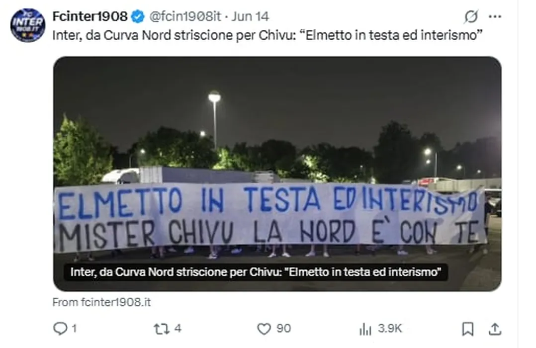Galeria Interului a luat hotărârea la câteva zile după numirea lui Chivu. Mesajul e clar pentru antrenorul român