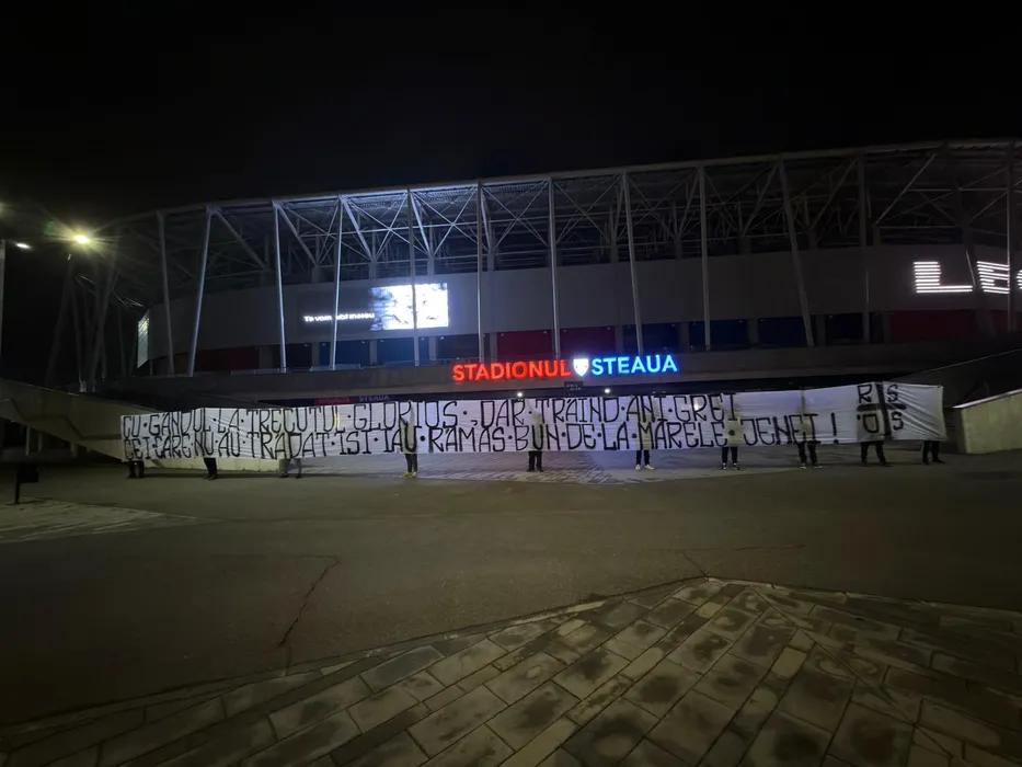 Galeria Stelei i-a făcut „altar” lui Emeric Ienei în fața „Templului” din Ghencea. Cum și-au luat rămas bun fanii roș-albaștrilor