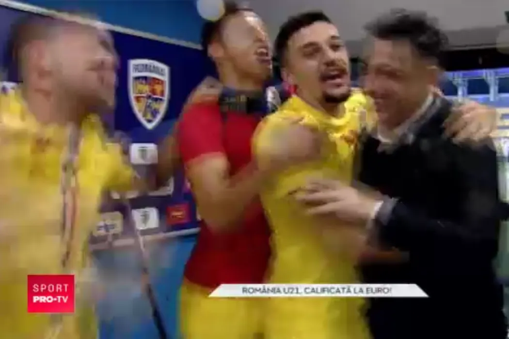 GALERIE FOTO | A curs șampania! Tricolorii mici au oprit interviul lui Rădoi și au făcut spectacol în fața camerelor TV: „Sunt mândru, fără ei n-aș fi reușit!”