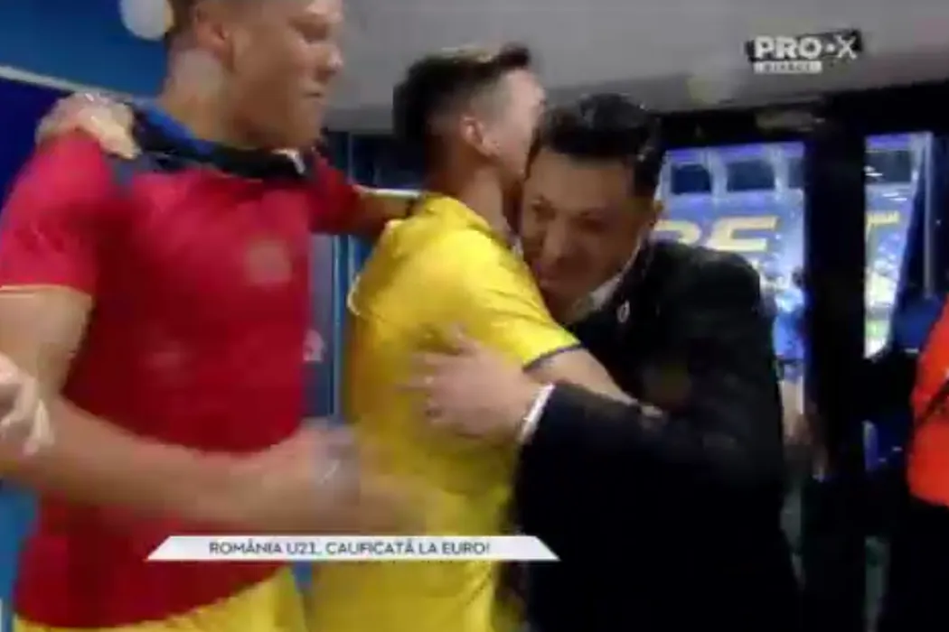 GALERIE FOTO | A curs șampania! Tricolorii mici au oprit interviul lui Rădoi și au făcut spectacol în fața camerelor TV: „Sunt mândru, fără ei n-aș fi reușit!”