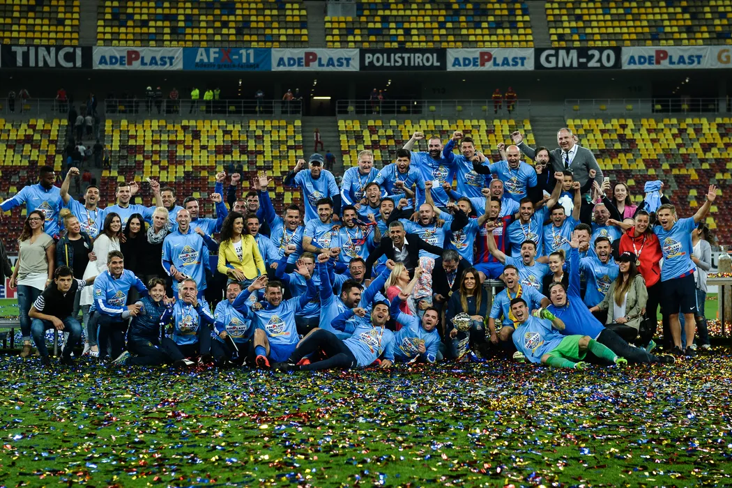 GALERIE FOTO | Ce făcea Gâlcă în timp ce steliștii sărbătoreau câștigarea Cupei Ligii. Antrenorul nu apare nici măcar în cadrul final al bucuriei, unde s-au adunat până și rudele fotbaliștilor