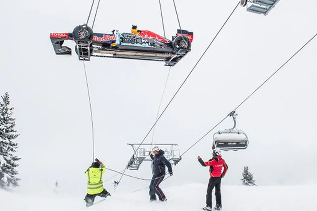 GALERIE FOTO | Cel mai tânăr pilot din istoria Formulei 1 s-a dat cu bolidul de 800 de cai putere pe pista de schi