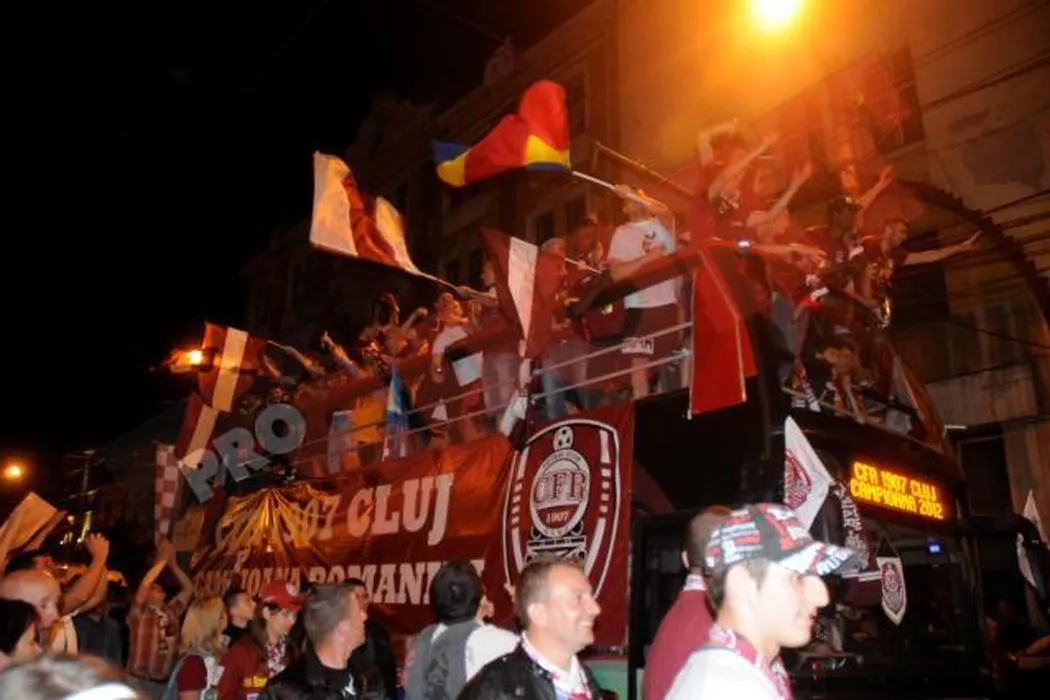 GALERIE FOTO** CFR-iștii au sărbătorit titlul în centrul orașului! Noapte albă și vișinie