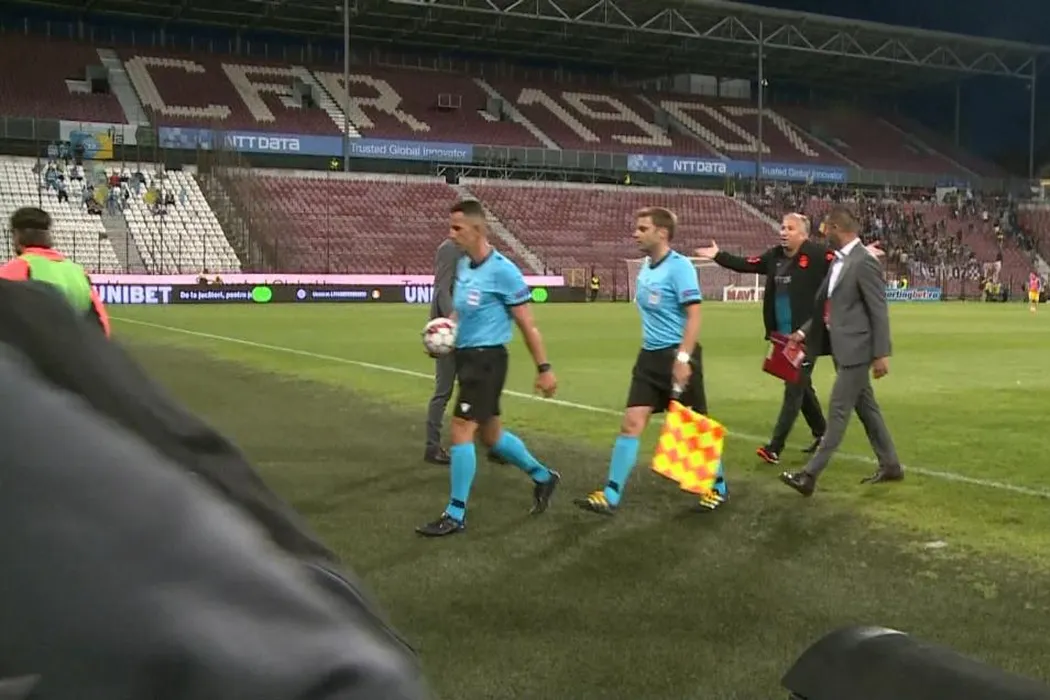 GALERIE FOTO | Dan Petrescu și-a ieșit din minți la pauza meciului CFR – Astana! „Bursucul” s-a dus glonț spre arbitri: ce le-a reproșat