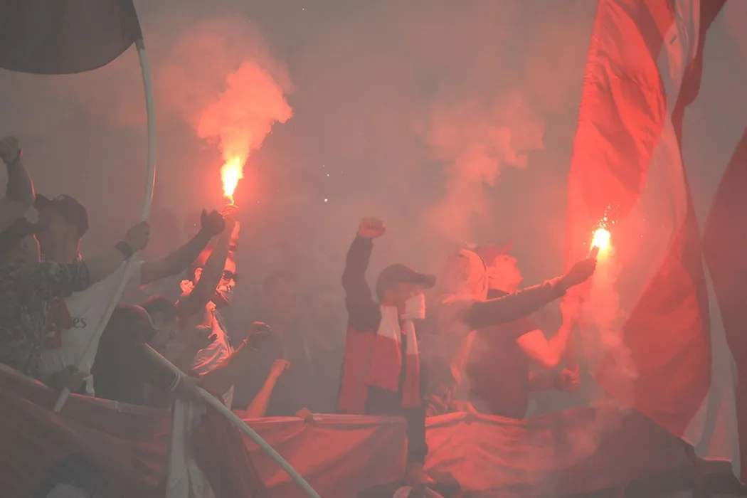 GALERIE FOTO | Dinamoviștii n-au mai avut coregrafie la derby, dar au făcut spectacol cu torțe și fumigene. Derby-ul a început cu 5 minute întârziere