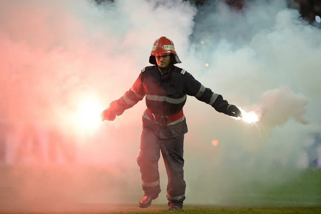 GALERIE FOTO | Dinamoviștii n-au mai avut coregrafie la derby, dar au făcut spectacol cu torțe și fumigene. Derby-ul a început cu 5 minute întârziere