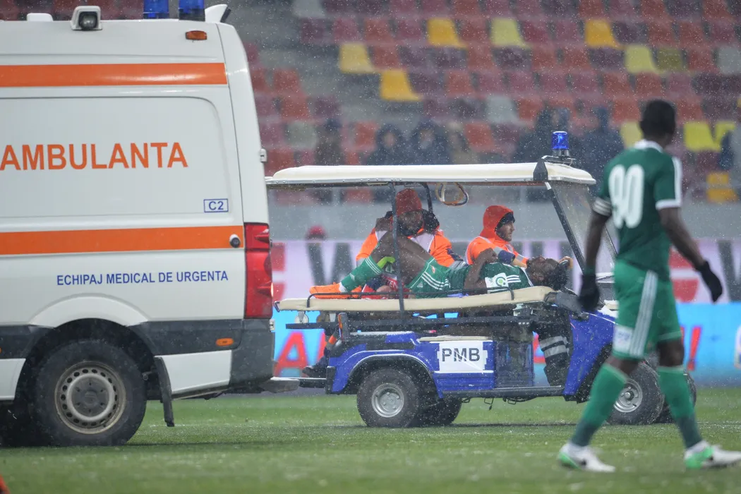 GALERIE FOTO | Momente de panică pe Arena Națională. S-a dat cap în cap cu un coechipier, a vrut să reintre pe teren, dar medicii nu l-au mai lăsat să joace