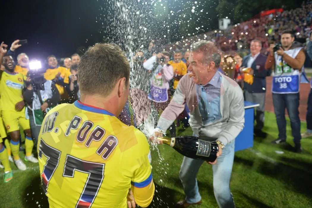 GALERIE FOTO | Momente incredibile la Iași. Becali, purtat pe brațe de jucătorii Stelei! Patronul roș-albaștrilor a „confiscat” trofeul acordat campioanei