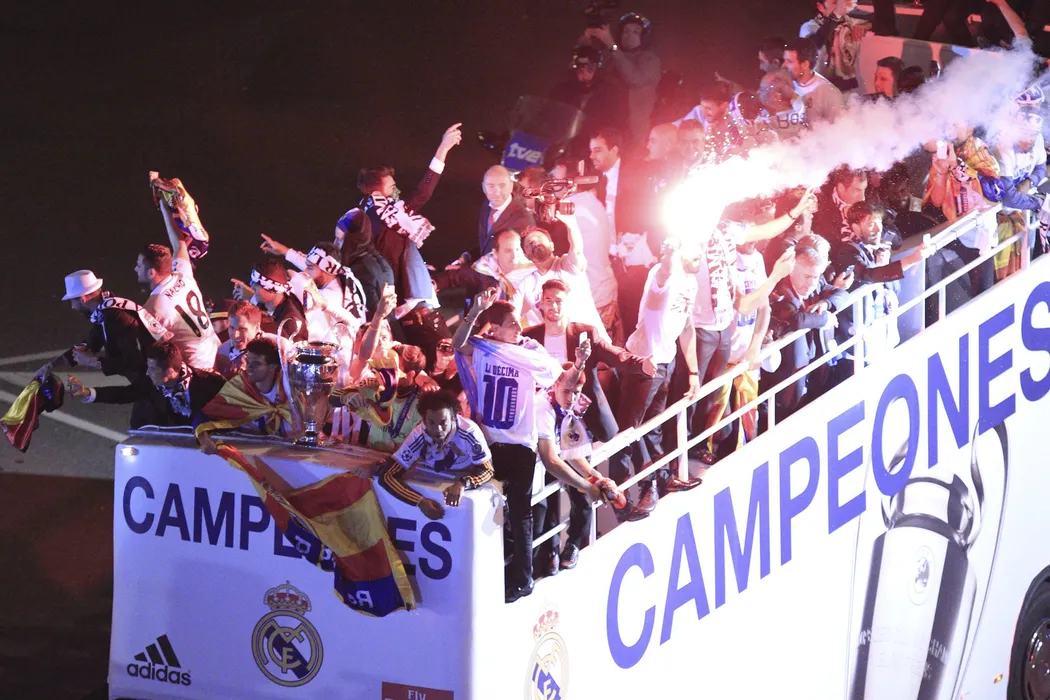 GALERIE FOTO | Noapte albă, noapte „galactică”. Jucătorii Realului au petrecut alături de fani în piața Cibeles