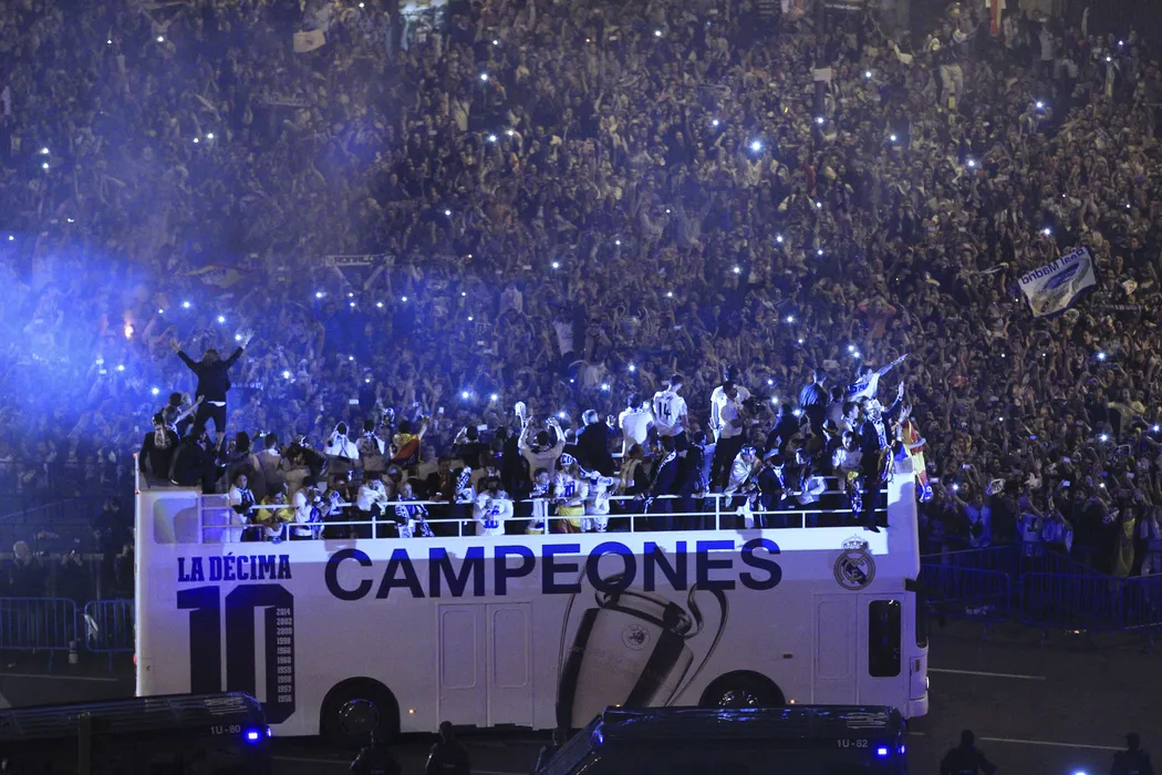 GALERIE FOTO | Noapte albă, noapte „galactică”. Jucătorii Realului au petrecut alături de fani în piața Cibeles