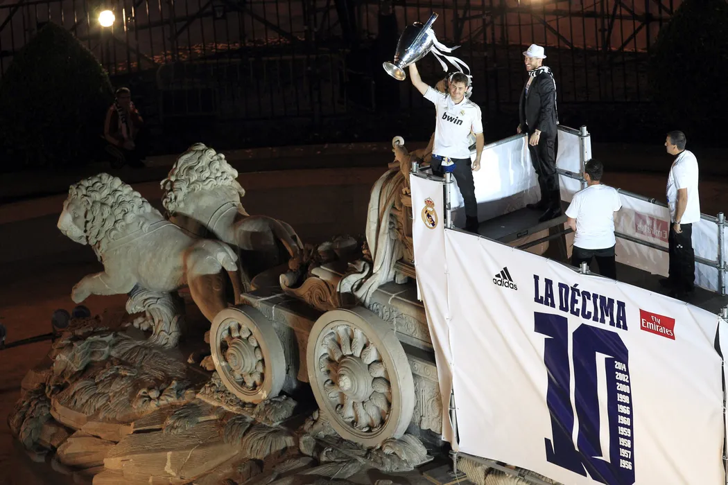 GALERIE FOTO | Noapte albă, noapte „galactică”. Jucătorii Realului au petrecut alături de fani în piața Cibeles