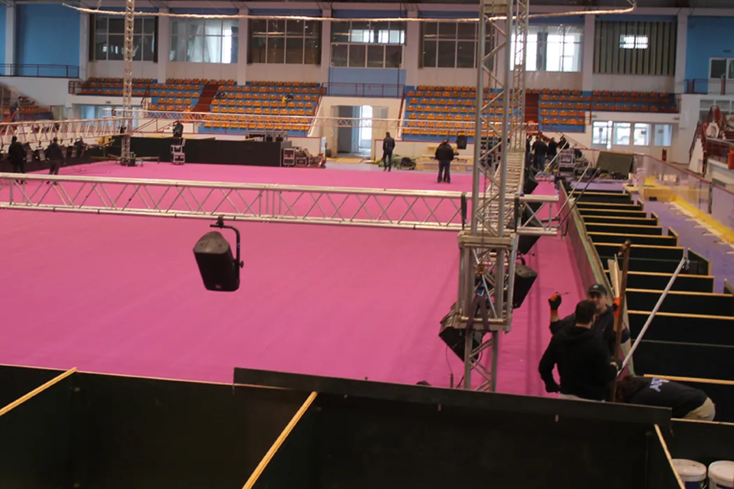 GALERIE FOTO | Patinoarul din Galați, transformat complet în arenă de tenis pentru meciurile de la FedCup. Simona Halep stabilește suprafața de joc: „Așteptăm ultimele ei indicații, să vedem cum o mai ajustăm”