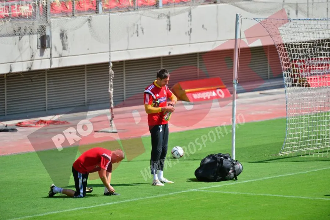 GALERIE FOTO | România, lovită de căldură la antrenamentul oficial. Au fost 29 de grade la ora 12:00 pe stadionul lui Olympiakos. Echipa probabilă pentru meciul cu Grecia