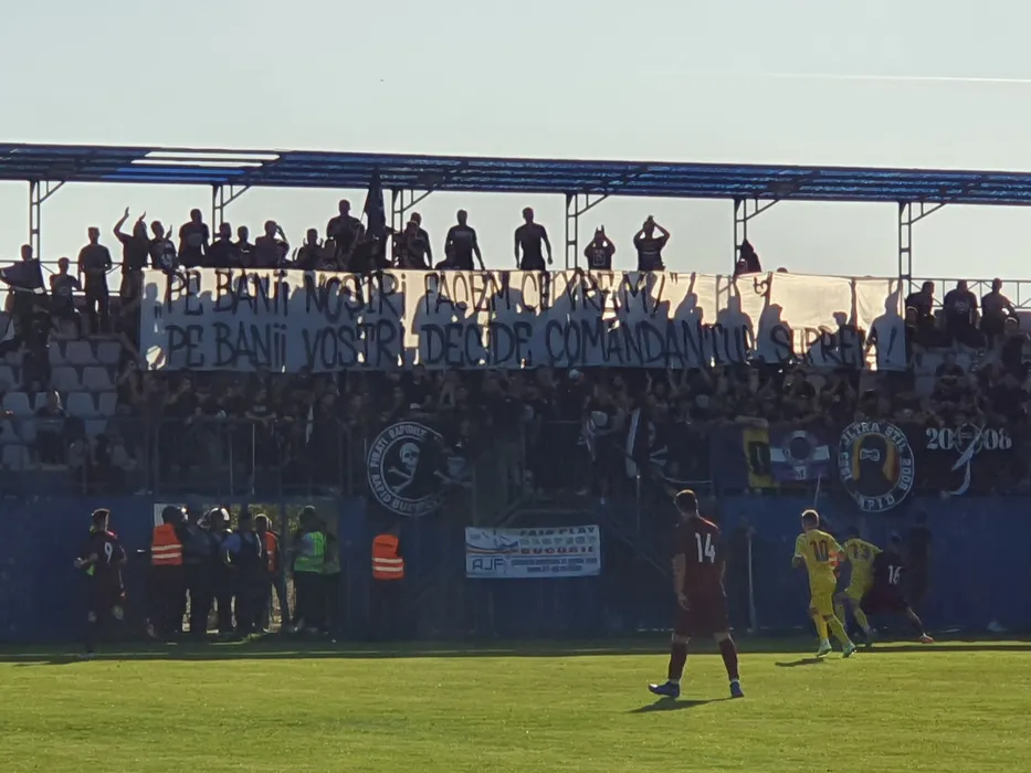 GALERIE FOTO | Spectacol pe arena din Berceni! Mesajele cu care s-au ”înțepat” steliștii și rapidiștii: ”Pentru asta luptă armata” vs ”Peaky Blinders de Giulești”