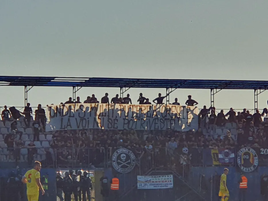 GALERIE FOTO | Spectacol pe arena din Berceni! Mesajele cu care s-au ”înțepat” steliștii și rapidiștii: ”Pentru asta luptă armata” vs ”Peaky Blinders de Giulești”