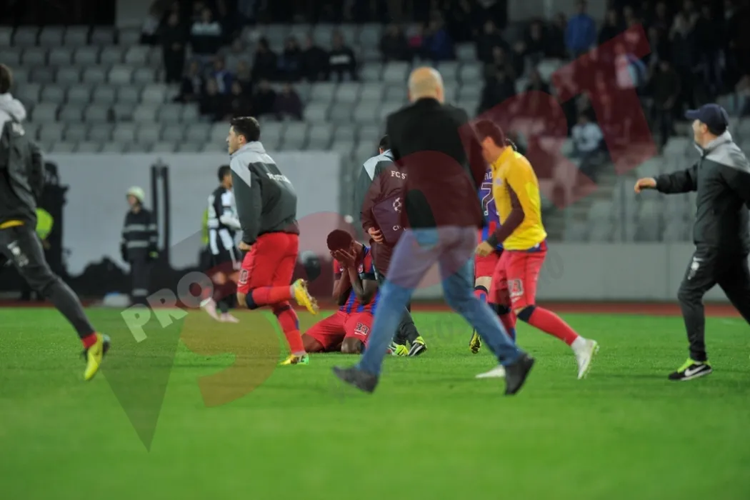 GALERIE FOTO: Steliștii au petrecut pe teren imediat după victoria cu „U”. După meci au fost așteptați ca niște superstaruri la hotel