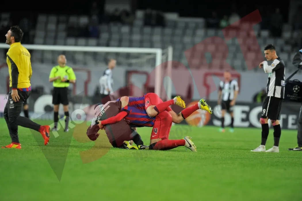 GALERIE FOTO: Steliștii au petrecut pe teren imediat după victoria cu „U”. După meci au fost așteptați ca niște superstaruri la hotel