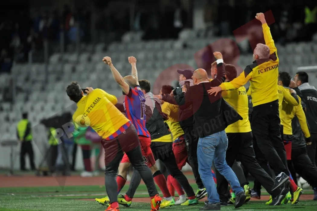 GALERIE FOTO: Steliștii au petrecut pe teren imediat după victoria cu „U”. După meci au fost așteptați ca niște superstaruri la hotel