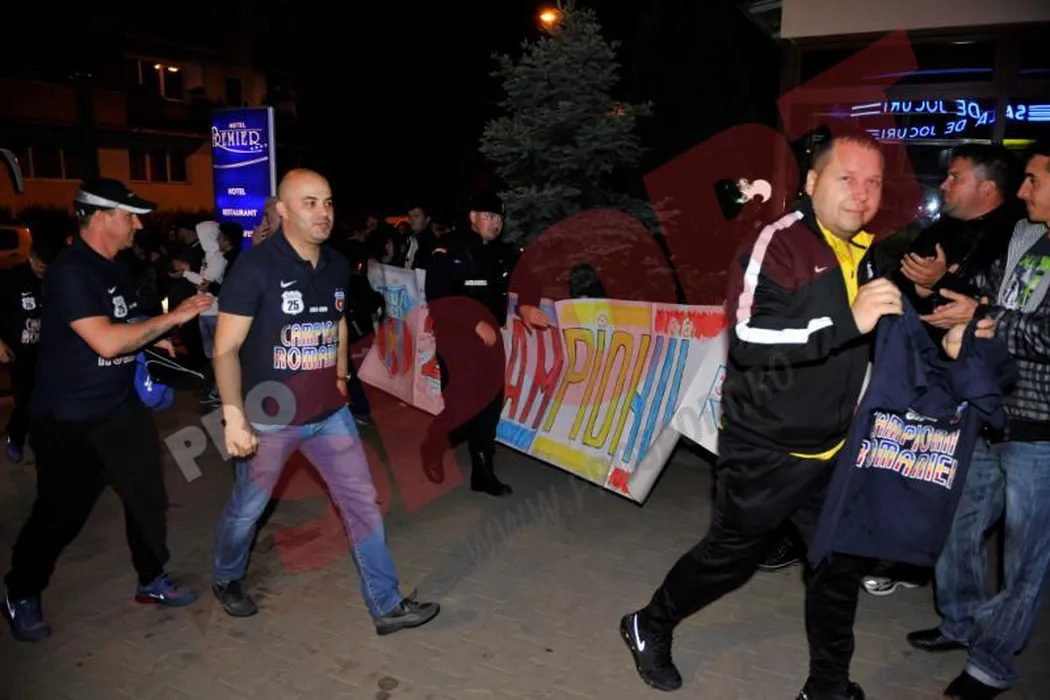GALERIE FOTO: Steliștii au petrecut pe teren imediat după victoria cu „U”. După meci au fost așteptați ca niște superstaruri la hotel