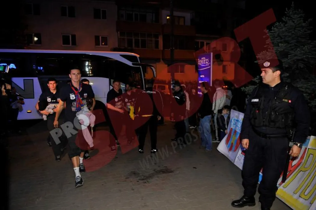 GALERIE FOTO: Steliștii au petrecut pe teren imediat după victoria cu „U”. După meci au fost așteptați ca niște superstaruri la hotel