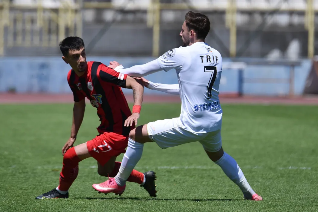 Igor Jovanovic si Razvan Alin Trif in meciul de fotbal dintre Gaz Metan Medias si Astra Giurgiu, contand pentru Liga 1 Casa Pariurilor, desfasurat fara spectatori pe Stadionul Municipal din Medias, sambata 08 mai 2021. © FOTO:Alex Veres/SPORT PICTURES
