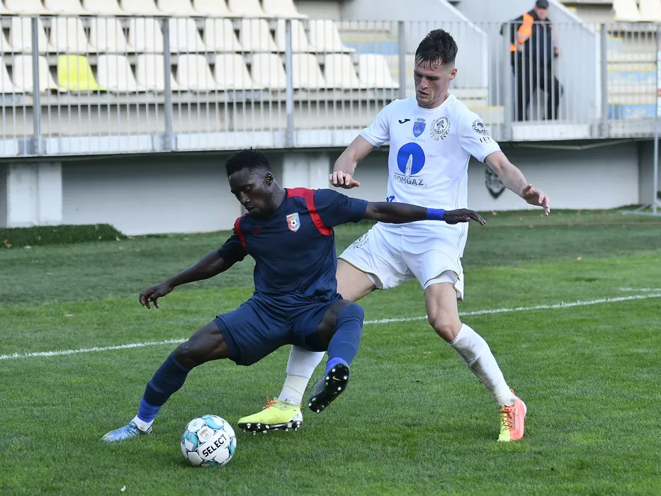Franck Alex Neeb Noma Blaise Yameogo si Ondrej Baco in meciul de fotbal dintre Chindia Targoviste si Gaz Metan Medias, contand pentru Liga 1 Casa Pariurilor, desfasurat fara spectatori pe Stadionul Ilie Oana din Ploiesti, sambata 17 octombrie 2020. © FOTO:Razvan Pasarica/SPORT PICTURES