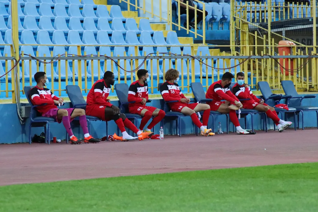Banca de rezerve Hermannstadt in meciul de fotbal dintre Gaz Metan Medias si AFC Hermannstadt din etapa a VI_a a Ligii 1, disputat pe stadionul Gaz Metan din Medias, duminica, 4 octombrie 2020.© FOTO: Macrea Valentin /Sport Picture