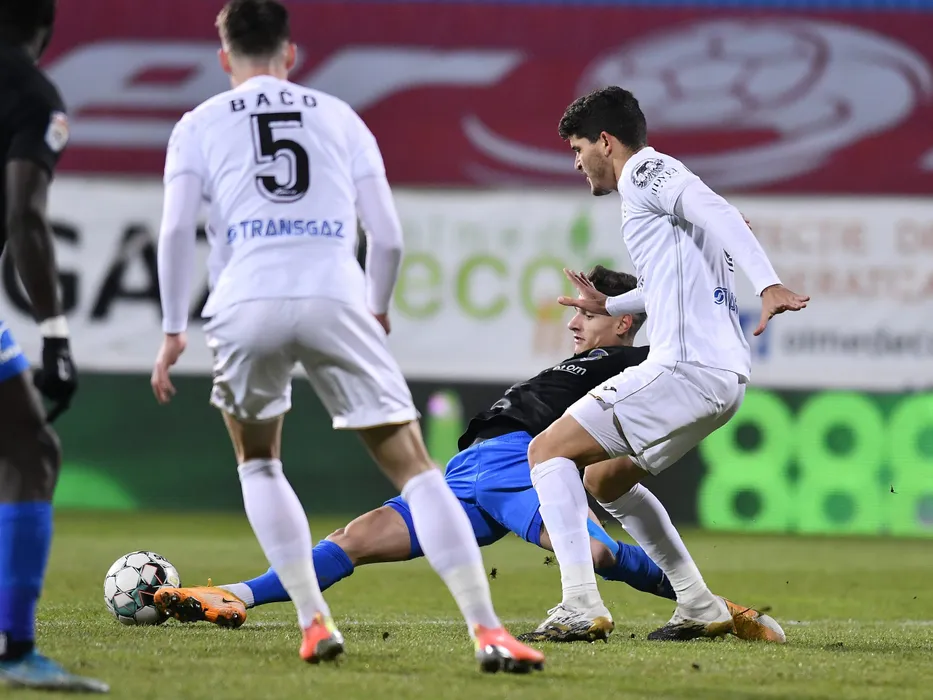 George Danut Ganea si Jefferson Yuri De Sousa Matias in meciul de fotbal dintre Gaz Metan Medias si Viitorul Constanta, contand pentru Liga 1 Casa Pariurilor, desfasurat fara spectatori pe Stadionul Municipal din Medias, sambata 19 decembrie 2020. © FOTO:Razvan Pasarica/SPORT PICTURES