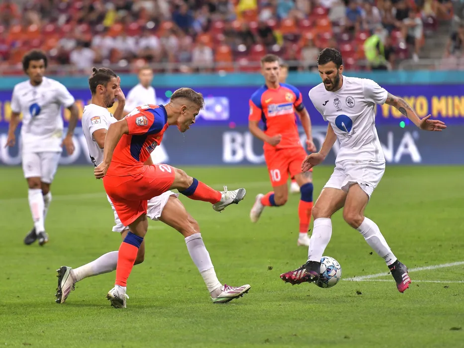 Ioan Constantin Filip, Darius Dumitru Olaru si Patricio Martin Matricardi in meciul de fotbal dintre FCSB si Gaz Metan Medias, contand pentru Liga 1 Casa Pariurilor, desfasurat pe Arena Nationala din Bucuresti, duminica 8 august 2021. © FOTO:Razvan Pasarica/SPORT PICTURES