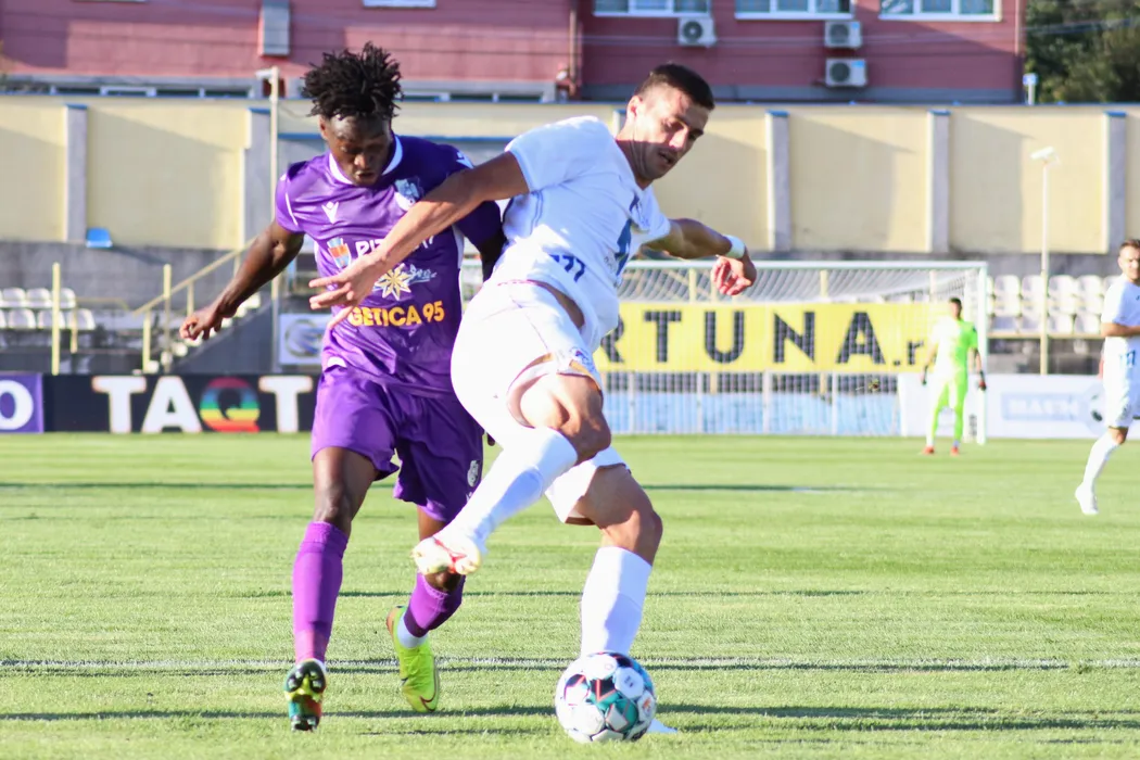 Ionut Larie (D) in meciul de fotbal dintre Gaz Metan Medias si FC Arges din etapa a II-a a Ligii 1 Casa Pariurilor, disputat pe stadionul Gaz Metan din Medias, vineri, 28 august 2020.© FOTO:Valentin Macrea/Sport Pictures