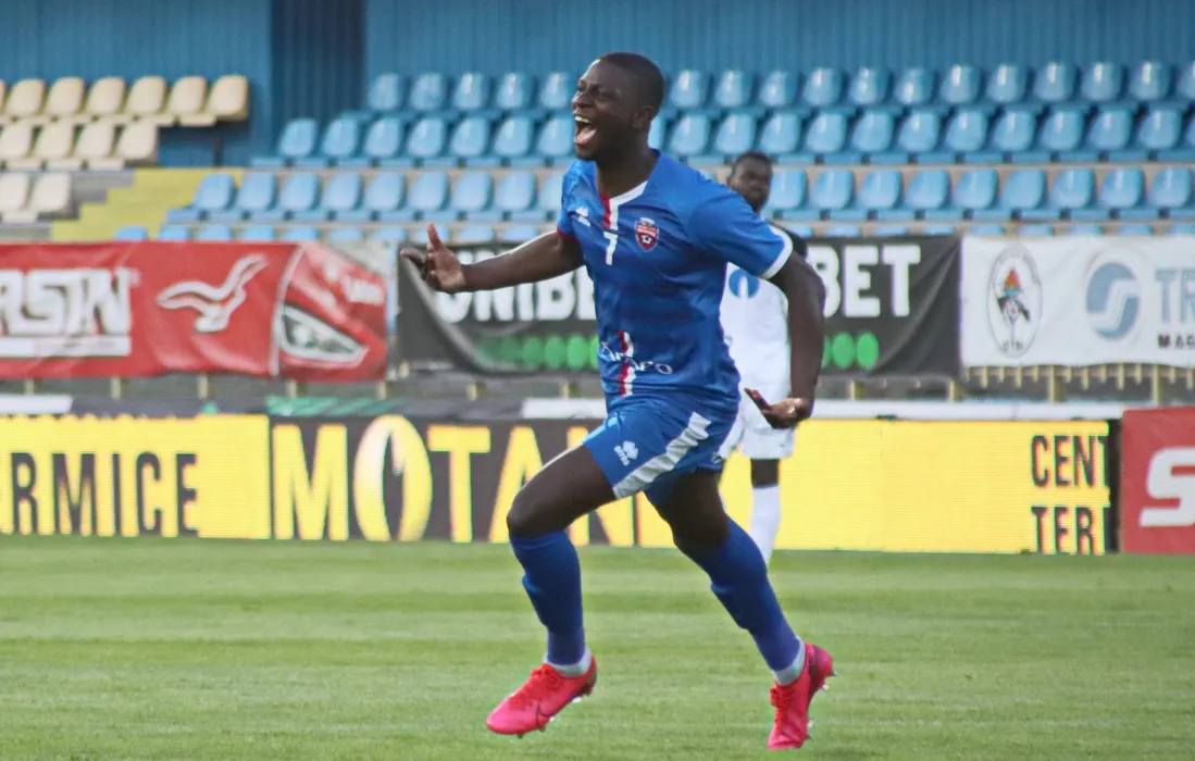 Hamidou Keita reactioneaza dupa inscrierea unui gol in meciul de fotbal dintre Gaz metan Medias si FC Botosani din etapa 5 a play-off-ului Ligii 1 Casa Pariurilor, disputat pe stadionul Gaz Metan din Medias, vineri, 26 iunie 2020.© FOTO:Macrea Valentin/ Sport Pictures